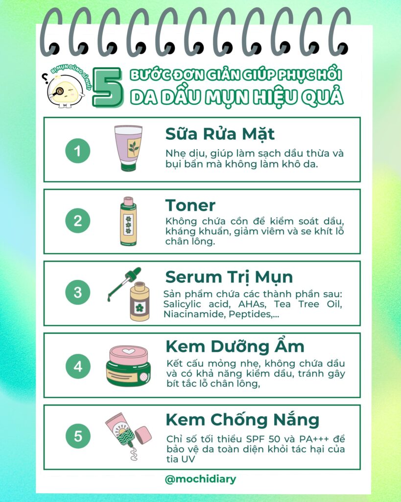 5 Bước Đơn Giản Giúp Phục Hồi Da Dầu Mụn Hiệu Quả