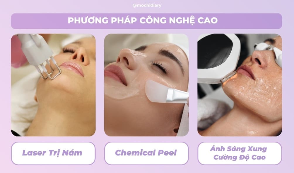 Nếu các phương pháp tự nhiên và kem trị nám không hiệu quả, bạn có thể thử các phương pháp công nghệ cao như: