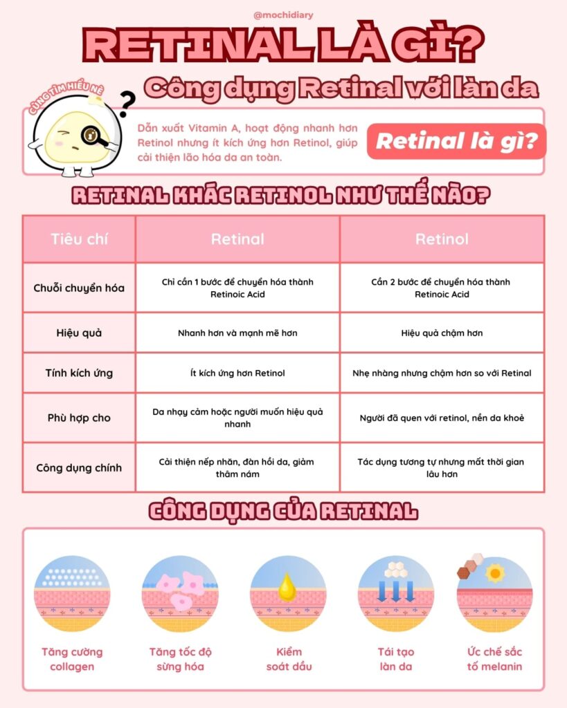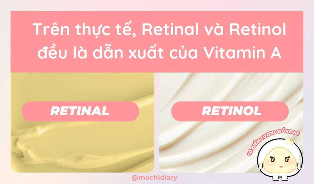 Retinal và Retinol đều là dẫn xuất của Vitamin A nhưng cách hoạt động trên da và hiệu quả có sự khác nhau: