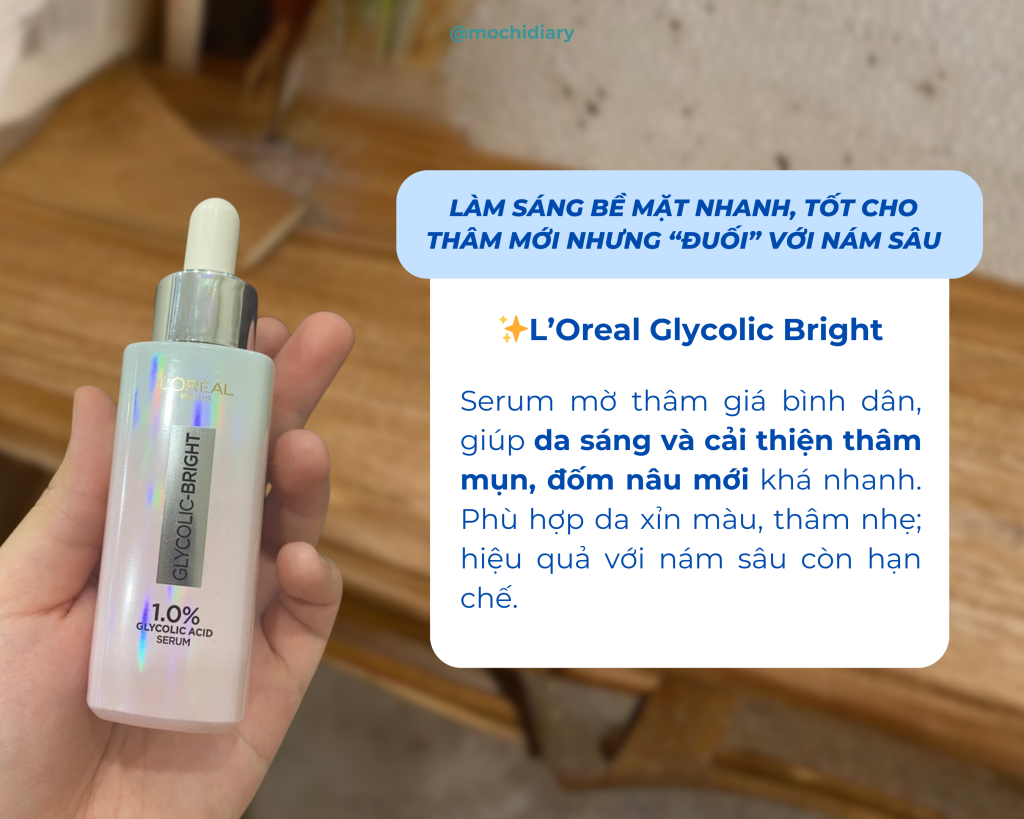 Serum L’Oreal Glycolic Bright – Bạt sừng nhẹ, tốt cho thâm mới nhưng “đuối” với nám lâu ngày