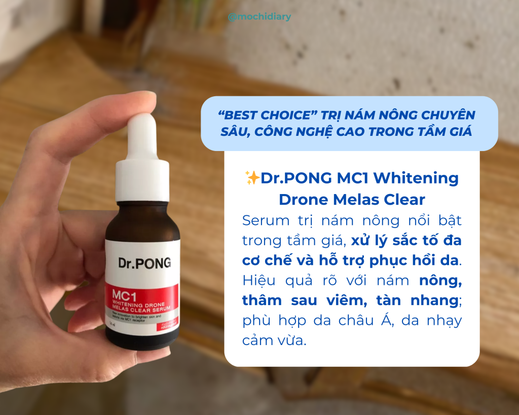 Mỗi serum trị nám đều có thế mạnh riêng, tùy thuộc vào loại nám và nền da. Nếu bạn đang tìm một giải pháp cân bằng giữa hiệu quả xử lý sắc tố, khả năng serum trị nám tàn nhang và độ an toàn lâu dài, Dr.PONG MC1 là lựa chọn rất đáng đầu tư. Trong trường hợp nám nặng, có thể kết hợp serum trị nám với kem trị nám phù hợp để tăng hiệu quả, nhưng cần chống nắng và phục hồi da kỹ lưỡng để tránh tái nám.