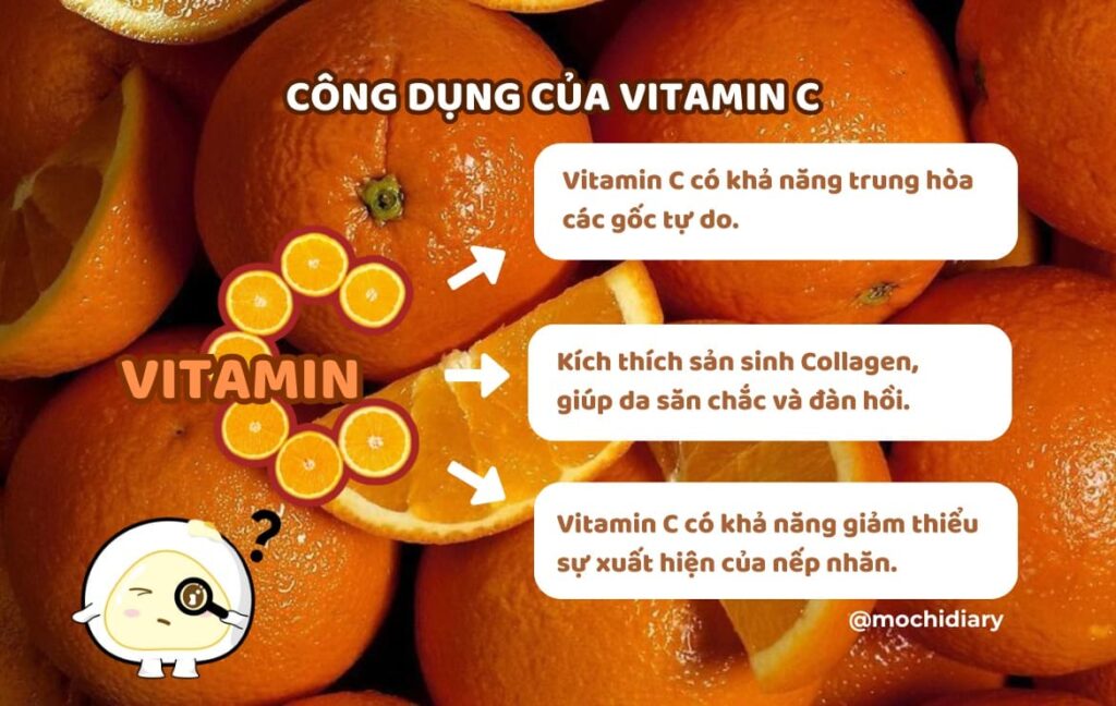 Có thể nói Vitamin C hoạt động như một “chiến binh” chống lại các gốc tự do, ngăn chặn quá trình lão hóa da và bảo vệ da trước những tổn thương sâu hơn. Bổ sung đủ Vitamin C sẽ giúp làn da tránh khỏi các tình trạng trên, giữ cho da luôn trắng sáng, mịn màng.