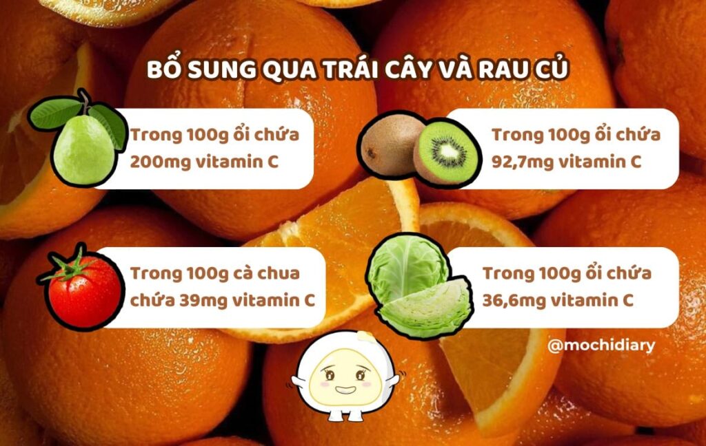 Ngoài việc ăn nhiều trái cây, rau củ giàu Vitamin C, bạn có thể sử dụng thêm thực phẩm chức năng. Tuy nhiên, Vitamin C là chất rất dễ bị phân hủy, vì vậy việc bổ sung thường xuyên và đúng cách là rất quan trọng.