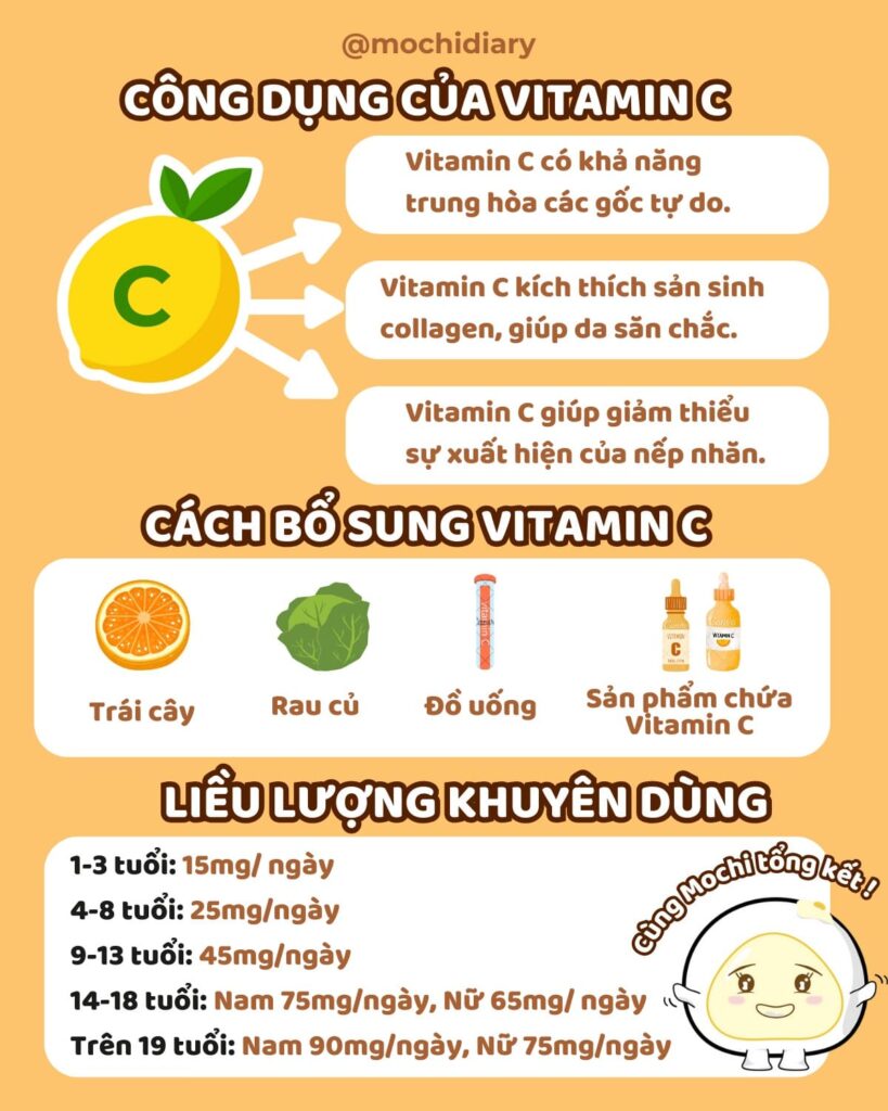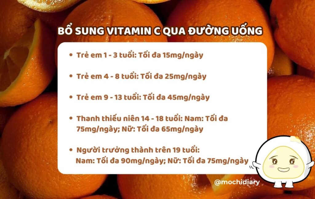 Liều dùng vitamin C phù hợp với từng độ tuổi: